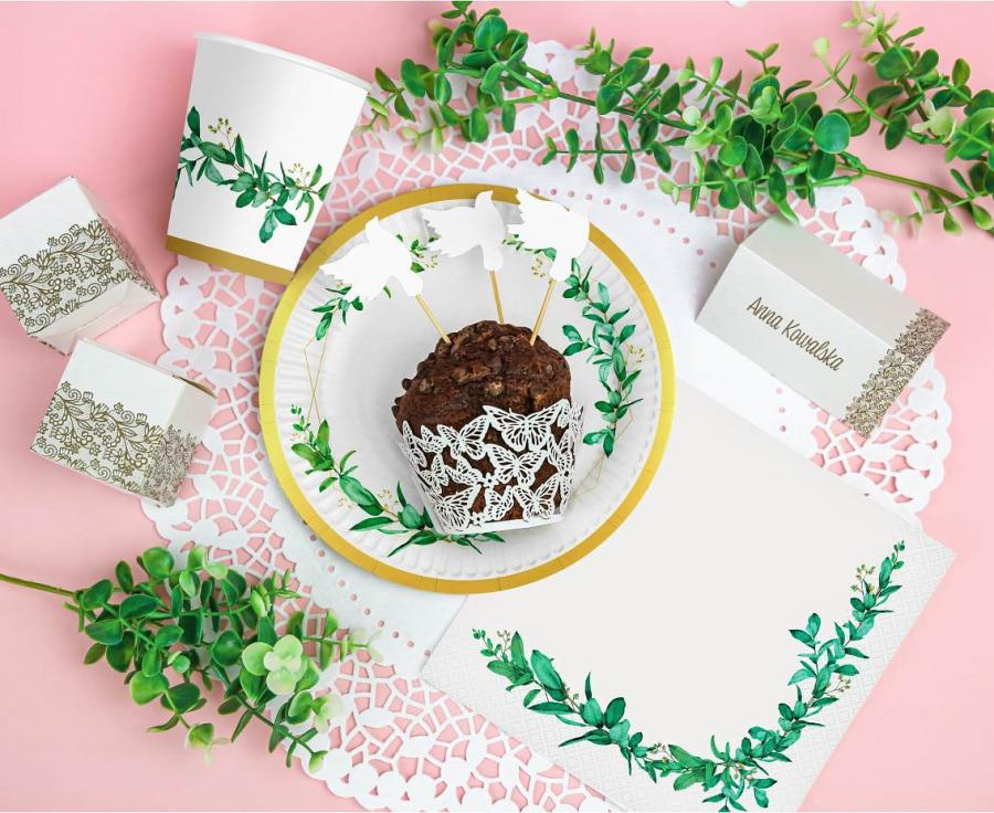 Stylowe serwetki papierowe z subtelnym nadrukiem zielonych listków to doskonały wybór na każdą uroczystość – od rodzinnych spotkań, przez przyjęcia w ogrodzie, aż po eleganckie bankiety. Ich delikatny wzór w odcieniach zieleni na białym tle dodaje świeżości i naturalnego uroku każdemu nakryciu stołu. Świetnie sprawdzą się zarówno w aranżacjach w stylu boho i rustykalnym, jak i w klasycznych kompozycjach.