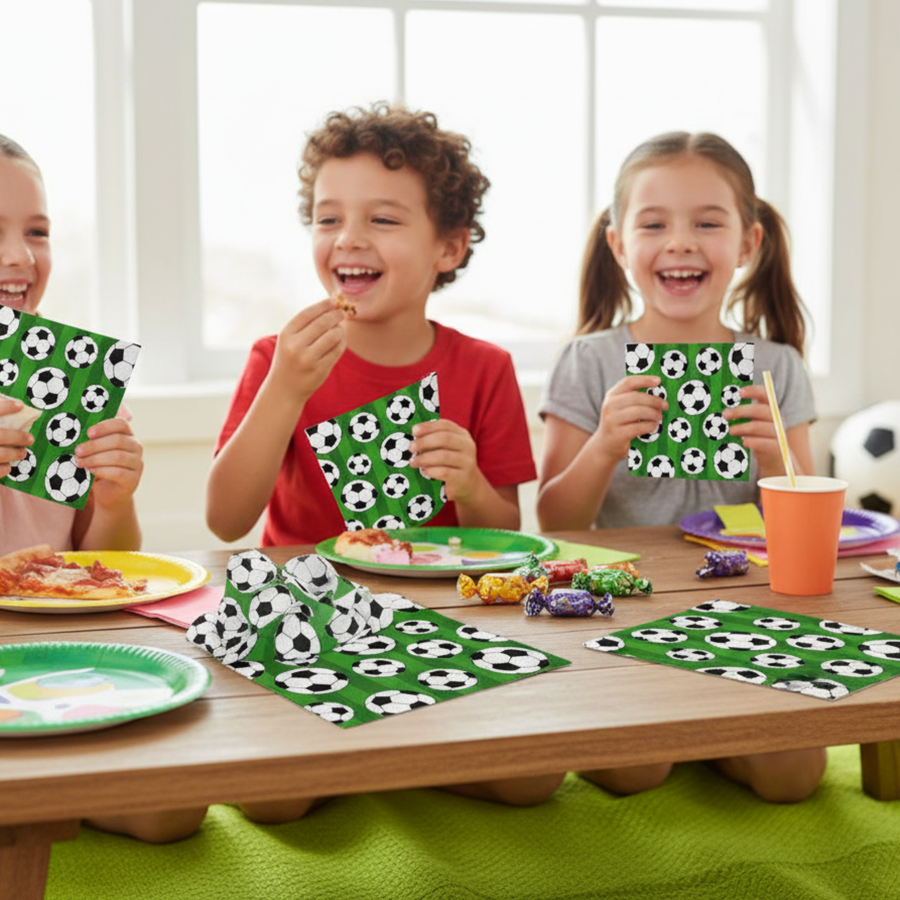 Dodaj sportowego ducha każdemu spotkaniu dzięki serwetkom papierowym z motywem piłki nożnej! To doskonały wybór na urodziny małego fana futbolu, imprezy tematyczne, pikniki lub oglądanie meczów w gronie przyjaciół. Serwetki łączą funkcjonalność z efektownym wzorem, który z pewnością zachwyci wszystkich miłośników piłki nożnej. Wykonane z wysokiej jakości papieru, są nie tylko estetyczne, ale także trwałe i chłonne.