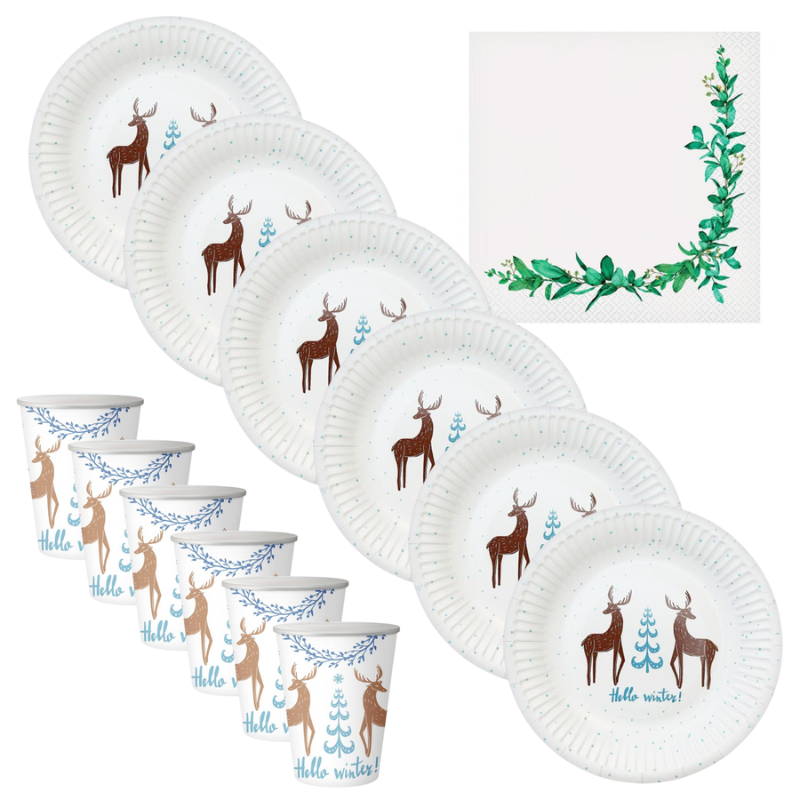 Zestaw zimowy „Hello Winter!” – 6 talerzyków, 6 kubeczków i 20 serwetek