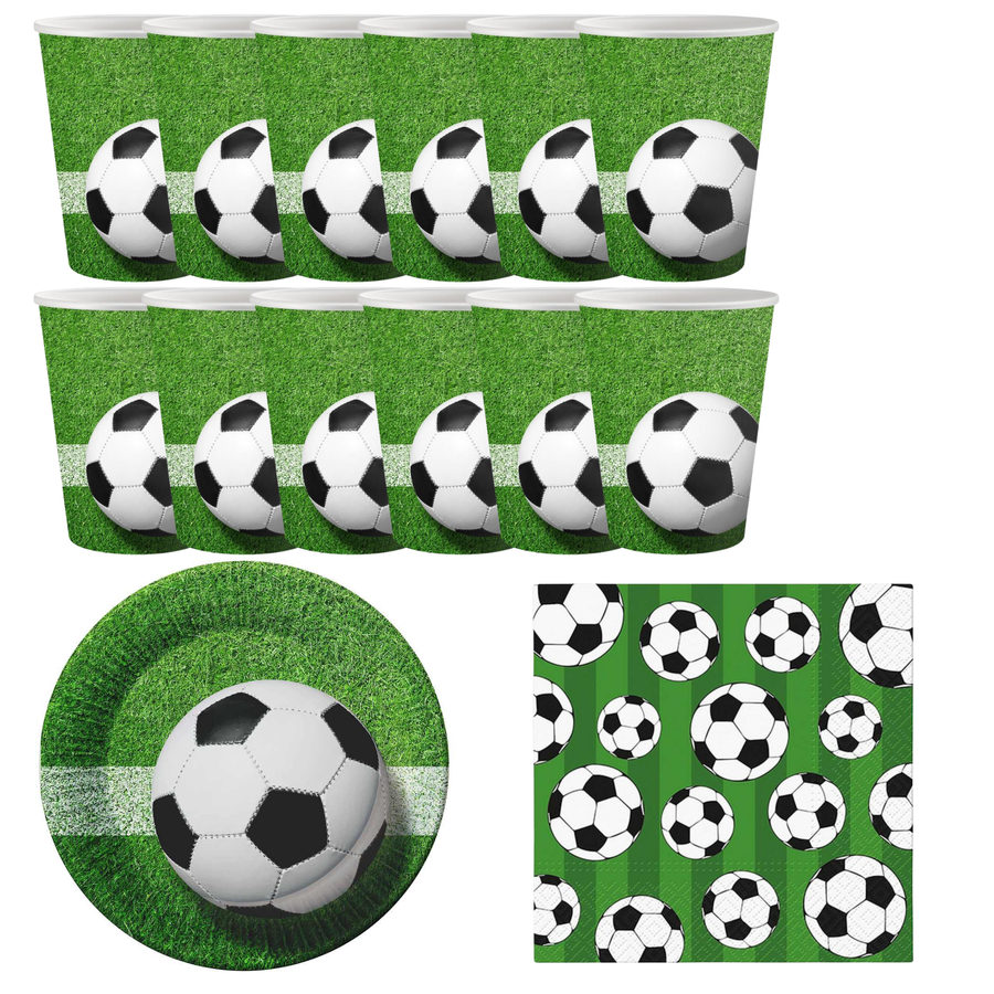 Zestaw imprezowy „Piłka Nożna” – 12 talerzyków, 12 kubeczków i 20 serwetek