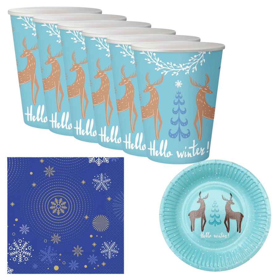 Zestaw dekoracyjny „Hello Winter” – 6 talerzyków, 6 kubeczków i 20 serwetek