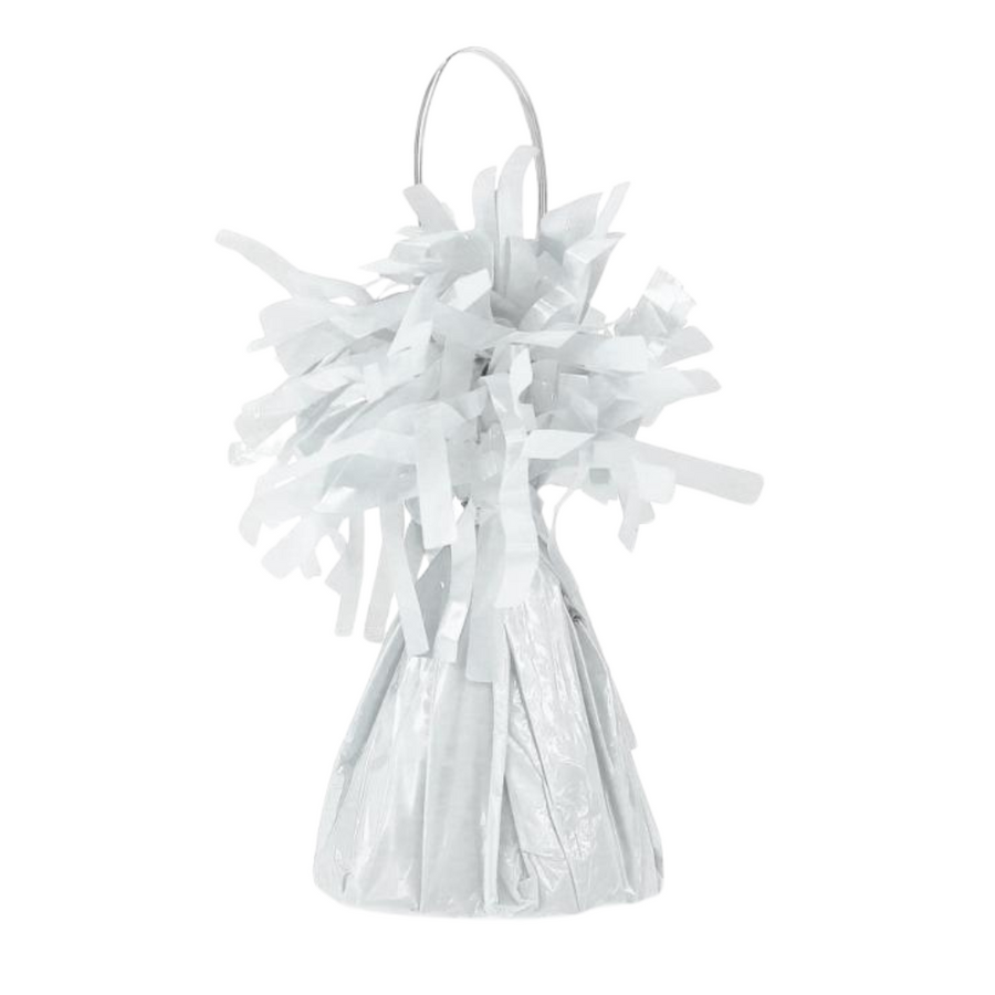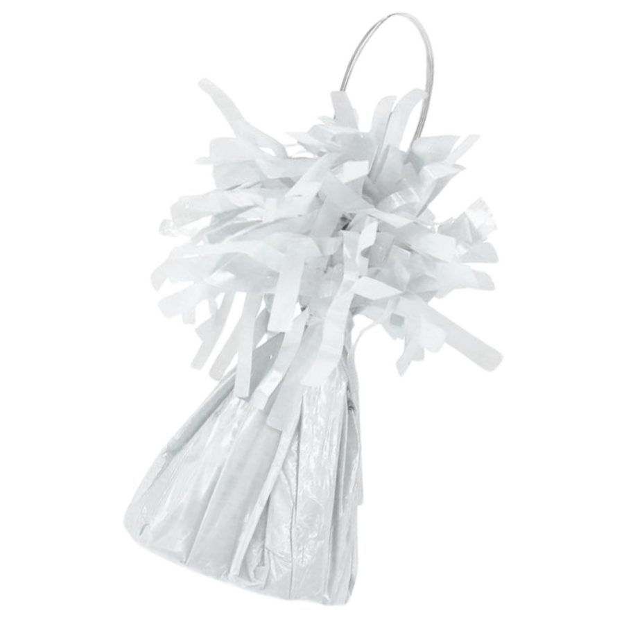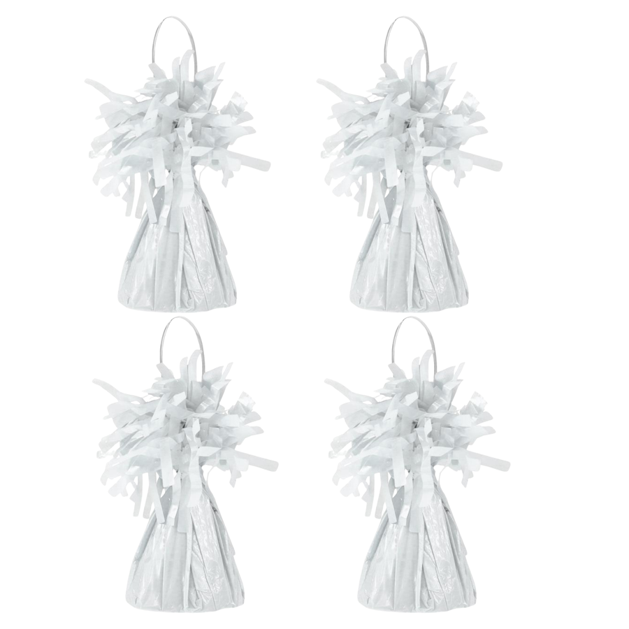 Zestaw zawiera 4 pastelowe białe ciężarki do balonów z helem.