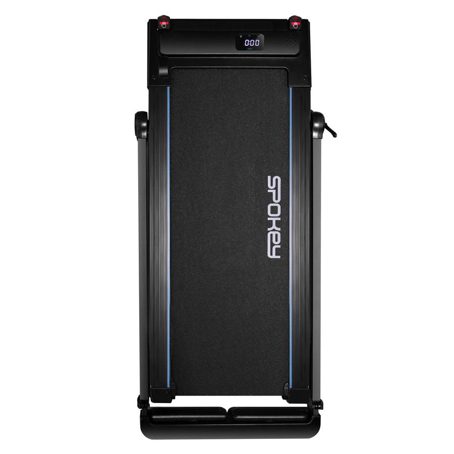 Spokey EZRA to nowoczesna bieżnia elektryczna stworzona dla osób, które chcą połączyć aktywny tryb życia z pracą lub rozrywką. Wyposażona w zintegrowane biurko na laptopa, tablet lub smartfon, umożliwia trening w czasie spotkań online lub podczas oglądania ulubionych seriali. Cicha praca silnika o mocy 1,5 HP, prędkość do 14 km/h, 12 programów treningowych i 2-stopniowa regulacja nachylenia sprawiają, że EZRA to idealne rozwiązanie do efektywnego i wygodnego treningu w domowym zaciszu.