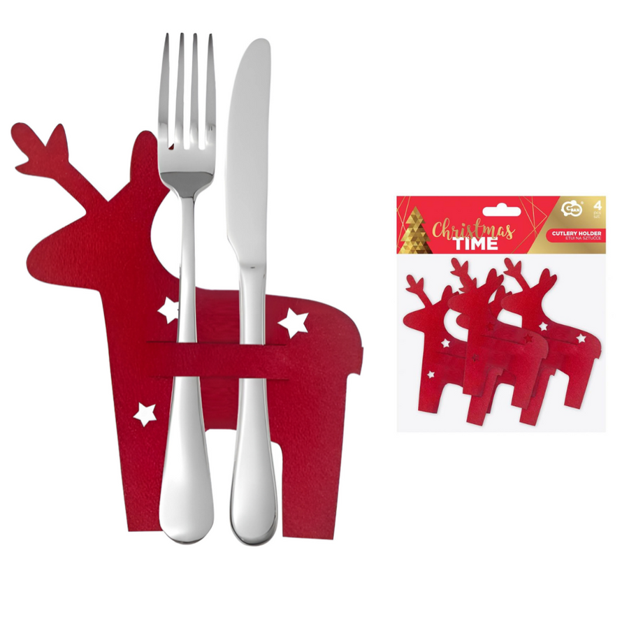 Etui Na Sztućce Świąteczne Pokrowiec Renifer Na Boże Narodzenie 4 szt.