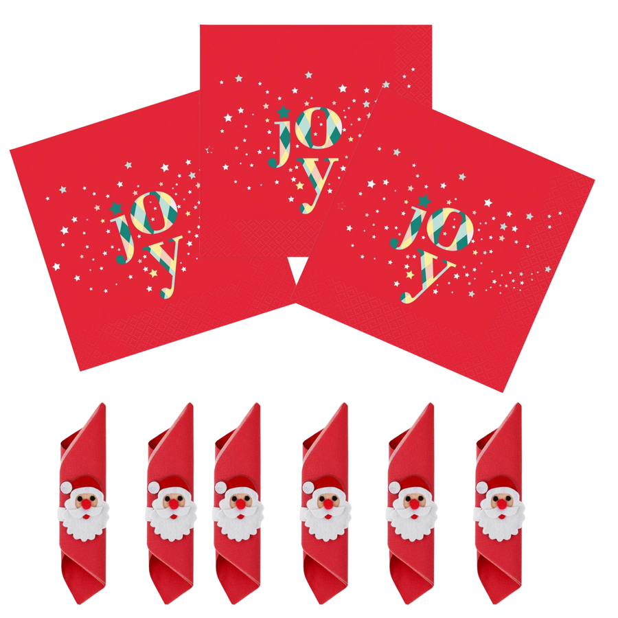 Zestaw świąteczny: 20 serwetek „JOY” + 6 filcowych ozdób na serwetki (Mikołaj)