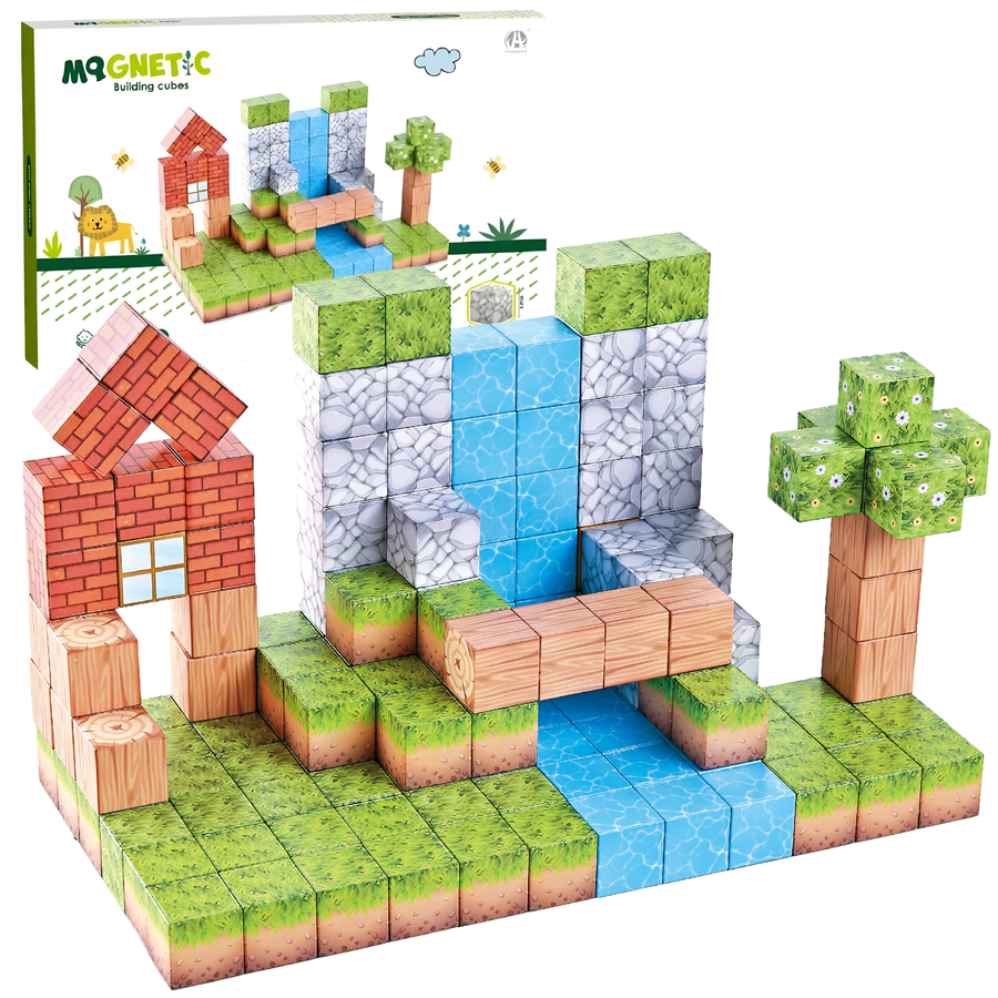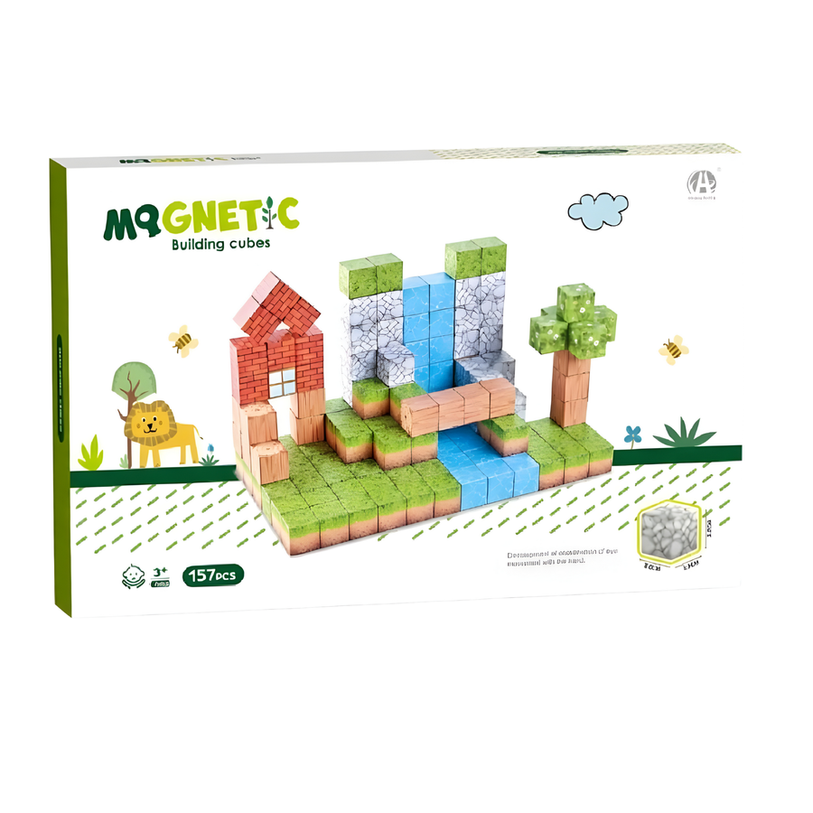 Rozbudź wyobraźnię dziecka dzięki zestawowi magnetycznych klocków o realistycznych nadrukach natury i budulców! Aż 157 elementów pozwala tworzyć proste konstrukcje, złożone budowle, a nawet całe scenki – od ogródków, przez domki, aż po leśne krajobrazy. Każdy klocek ma wymiar ok. 2,5 cm (1 cal) i zawiera mocny magnes w 8 narożnikach, co zapewnia stabilność i pewne łączenie. Zestaw jest kompatybilny z wieloma popularnymi klockami magnetycznymi.