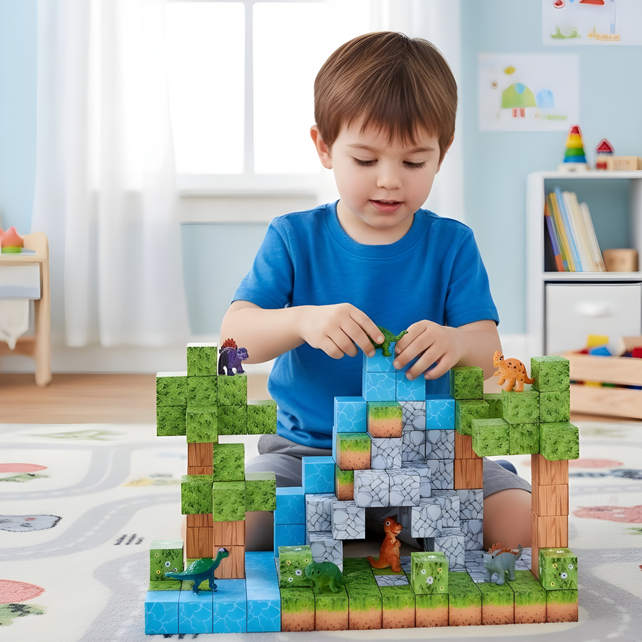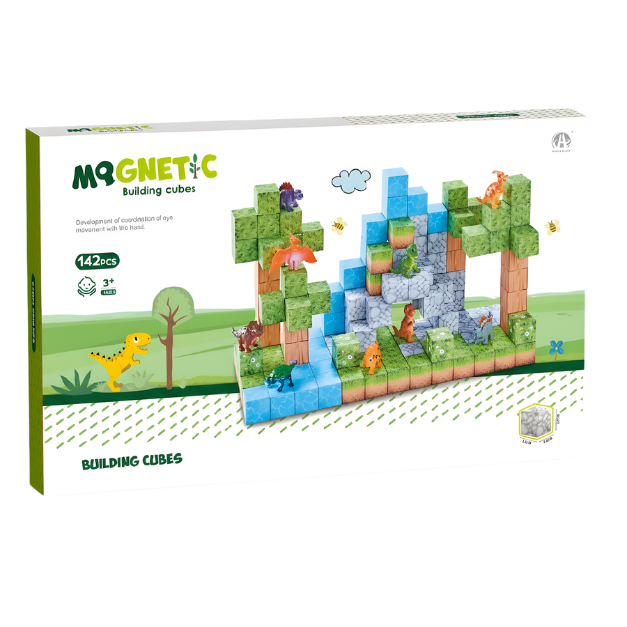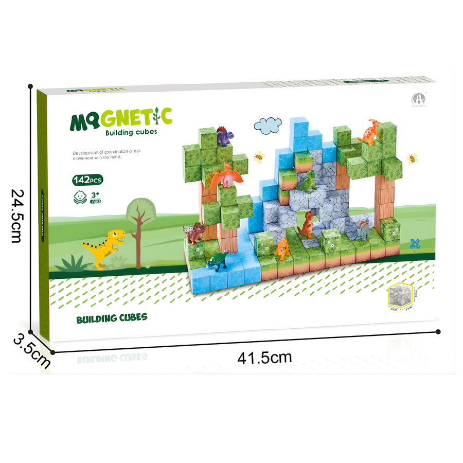 Rozbudź wyobraźnię dziecka dzięki wyjątkowemu zestawowi magnetycznych klocków MQGNETIC! Ten bogaty zestaw składający się ze 142 elementów pozwala tworzyć prehistoryczne krajobrazy, budowle oraz scenki z dinozaurami. Każdy klocek ma wygodny rozmiar ok. 2,5 cm i wyposażony jest w mocny magnes, który zapewnia stabilność konstrukcji oraz komfort zabawy.