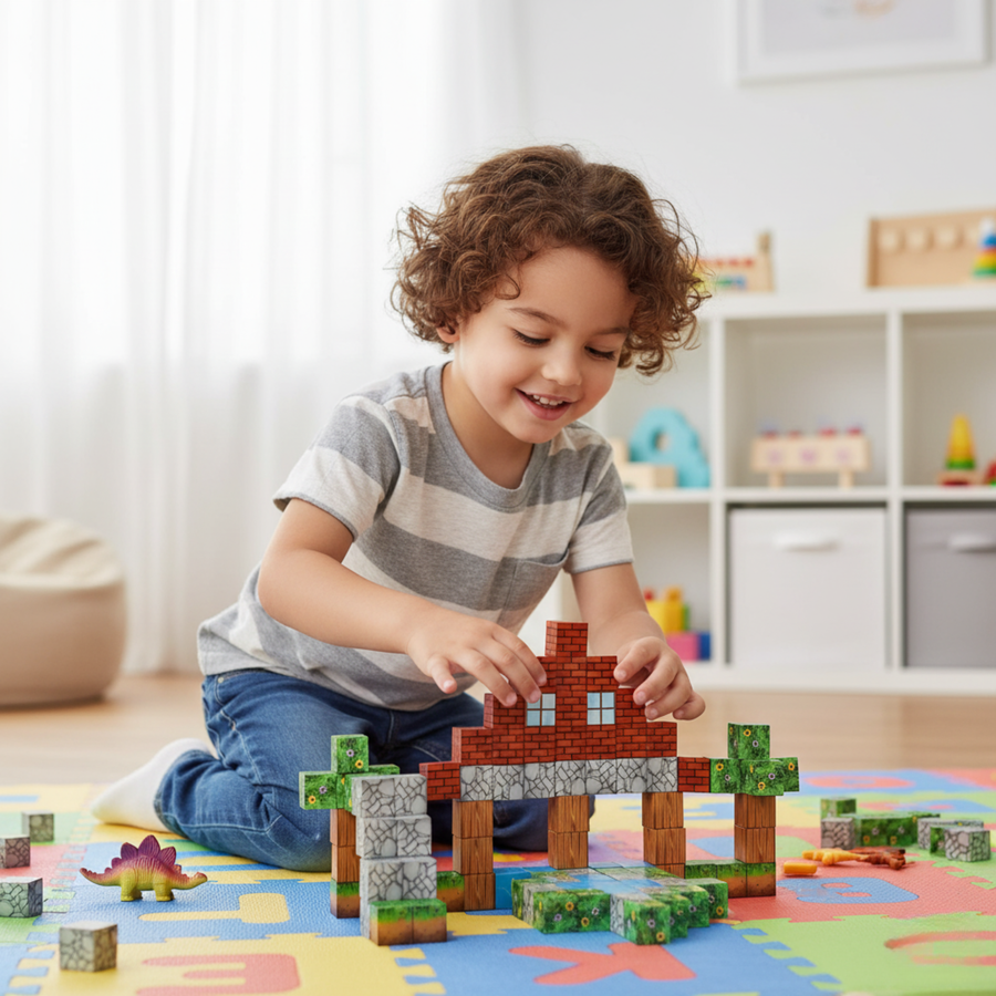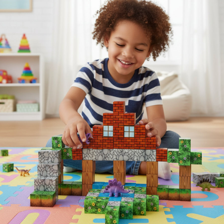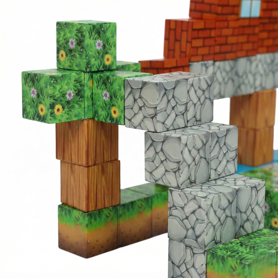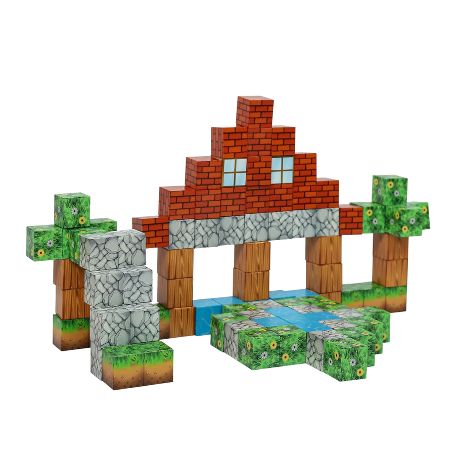 Otwórz drzwi do świata wyobraźni dzięki zestawowi 99 magnetycznych klocków inspirowanych pikselowym stylem znanym z popularnych gier. Każdy klocek ma realistyczne nadruki przedstawiające trawę, kamień, wodę, cegłę czy drewno, dzięki czemu dzieci mogą tworzyć własne miniaturowe światy pełne przygód. Magnetyczne łączenia zapewniają stabilne konstrukcje i sprawiają, że budowanie jest wygodne oraz niezwykle satysfakcjonujące.