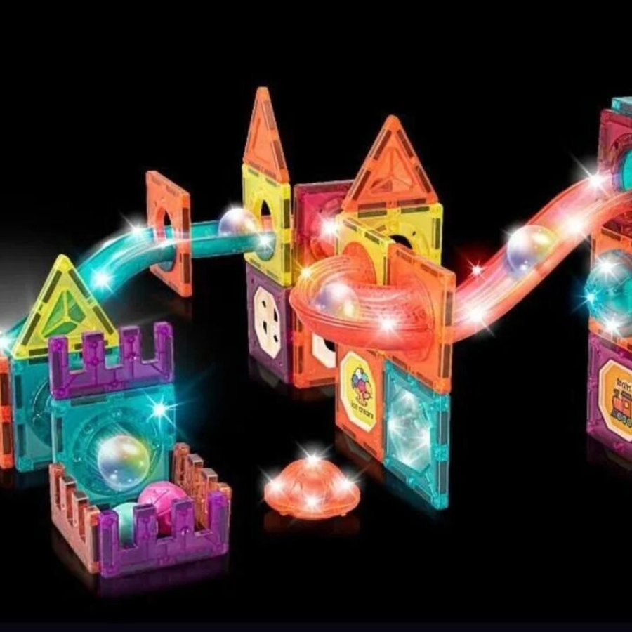 Klocki Magnetyczne Konstrukcyjne ŚwiecącyTor Zestaw Dla Dzieci 75 el.