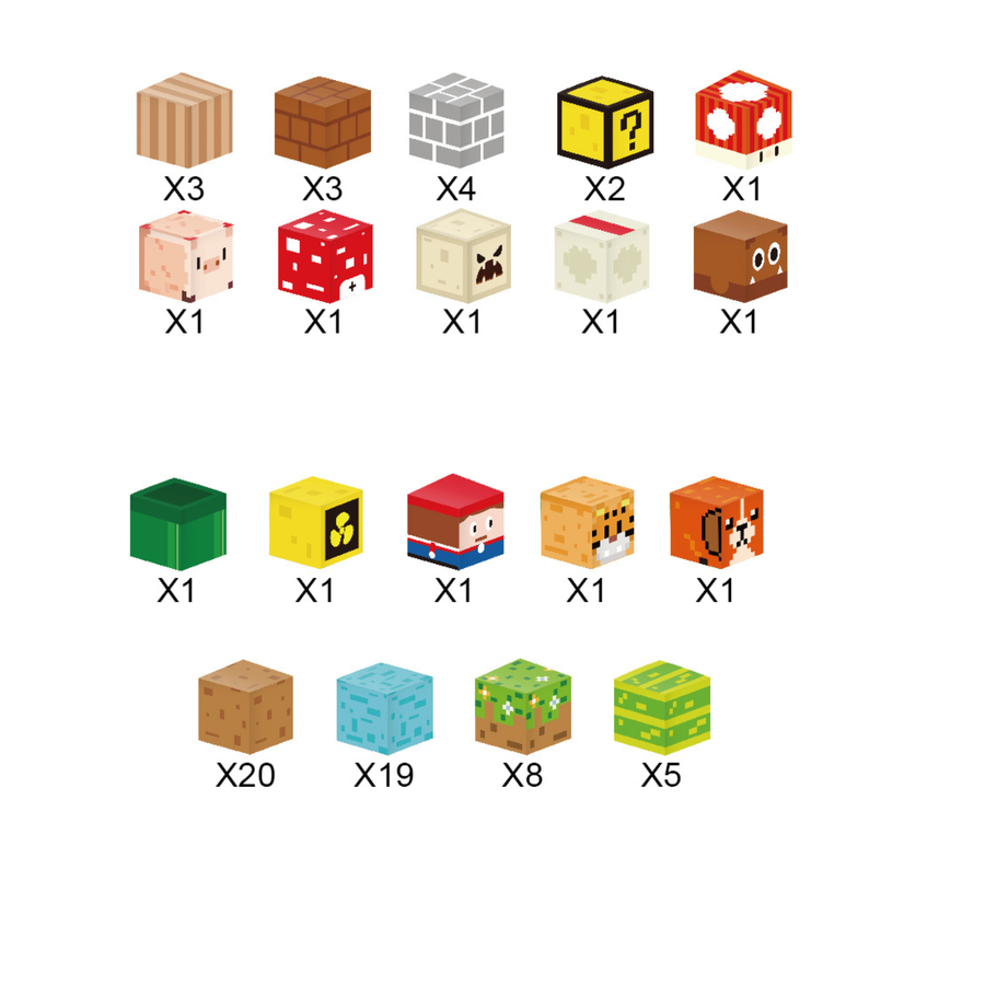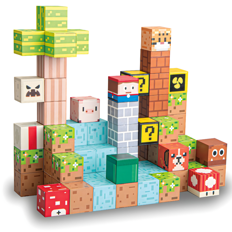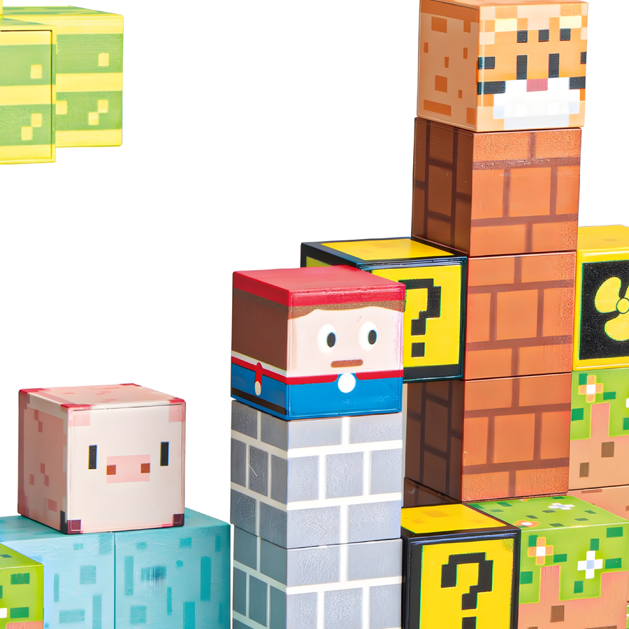 - Kompletny zestaw 75 elementów – idealny do budowania krajobrazów i konstrukcji w stylu pixel-art.