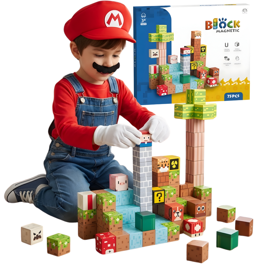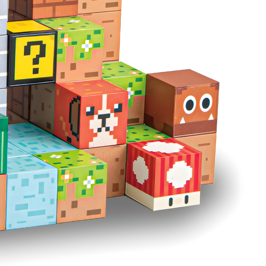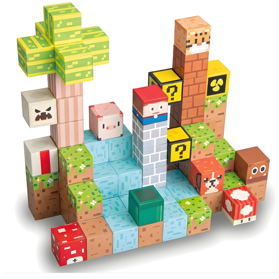 Otwórz drzwi do świata wyobraźni dzięki zestawowi 75 magnetycznych klocków inspirowanych pikselowym stylem znanym z popularnych gier. Każdy klocek ma realistyczne nadruki przedstawiające trawę, kamień, wodę, cegłę czy drewno, dzięki czemu dzieci mogą tworzyć własne miniaturowe światy pełne przygód. Magnetyczne łączenia zapewniają stabilne konstrukcje i sprawiają, że budowanie jest wygodne oraz niezwykle satysfakcjonujące.