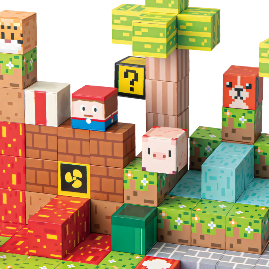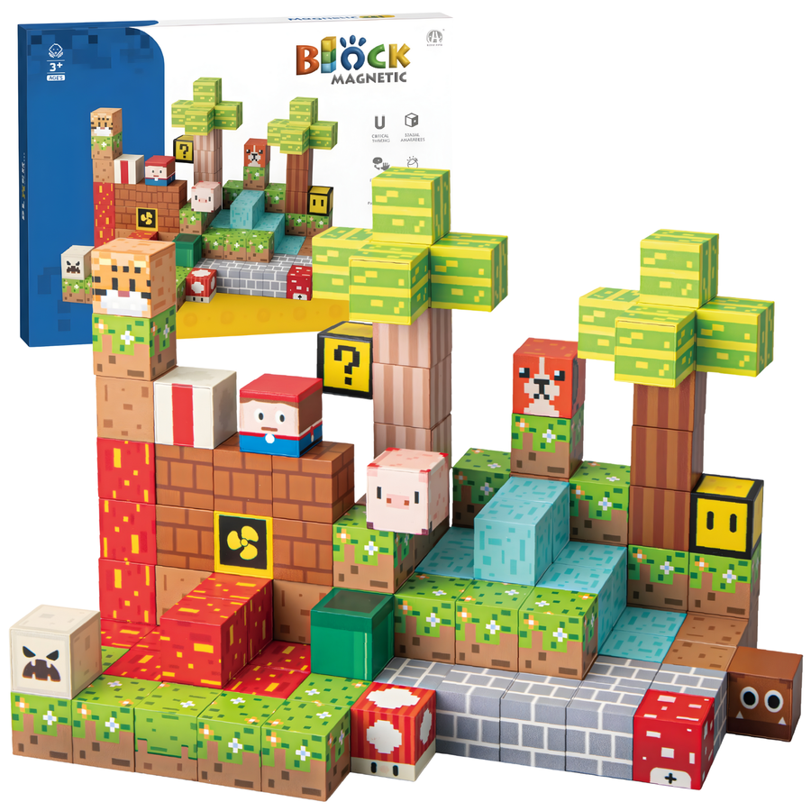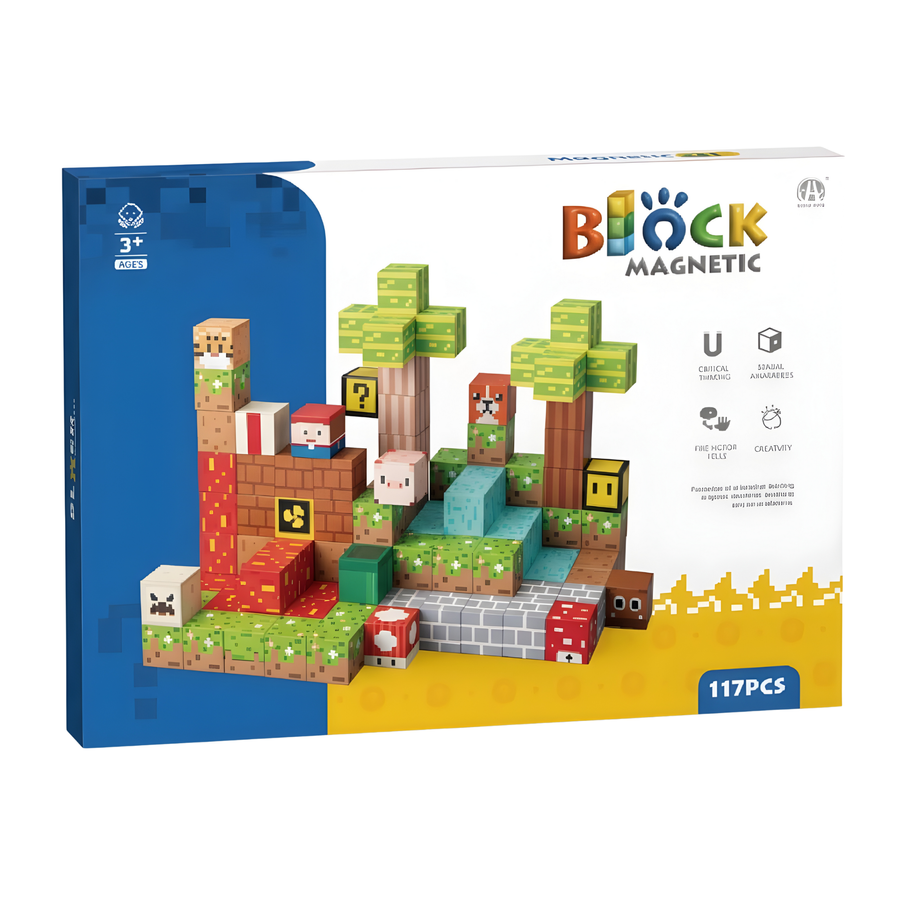 Otwórz drzwi do świata wyobraźni dzięki zestawowi 147 magnetycznych klocków inspirowanych pikselowym stylem znanym z popularnych gier. Każdy klocek ma realistyczne nadruki przedstawiające trawę, kamień, wodę, cegłę czy drewno, dzięki czemu dzieci mogą tworzyć własne miniaturowe światy pełne przygód. Magnetyczne łączenia zapewniają stabilne konstrukcje i sprawiają, że budowanie jest wygodne oraz niezwykle satysfakcjonujące.