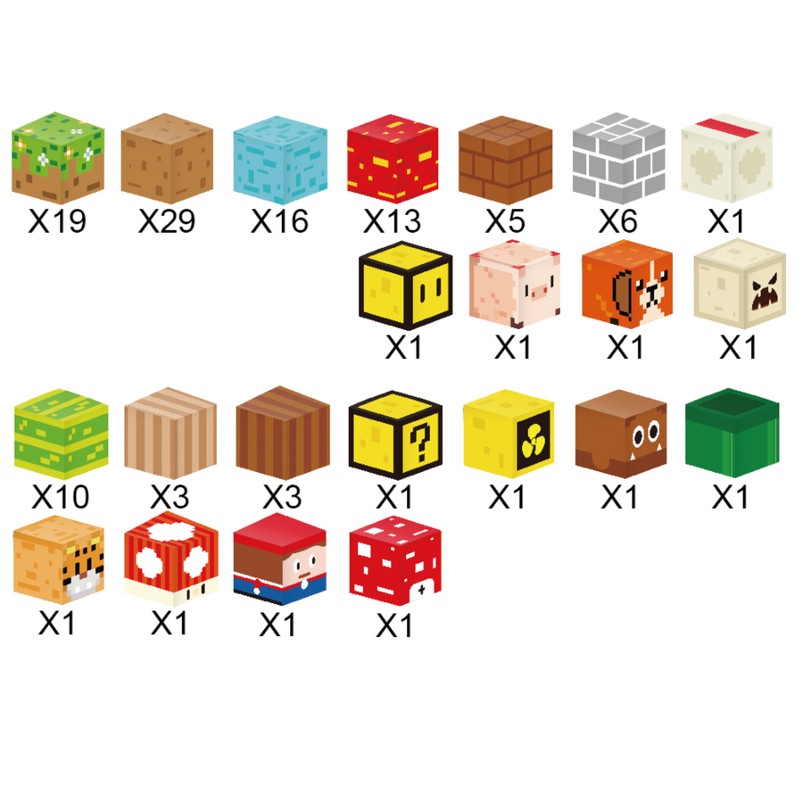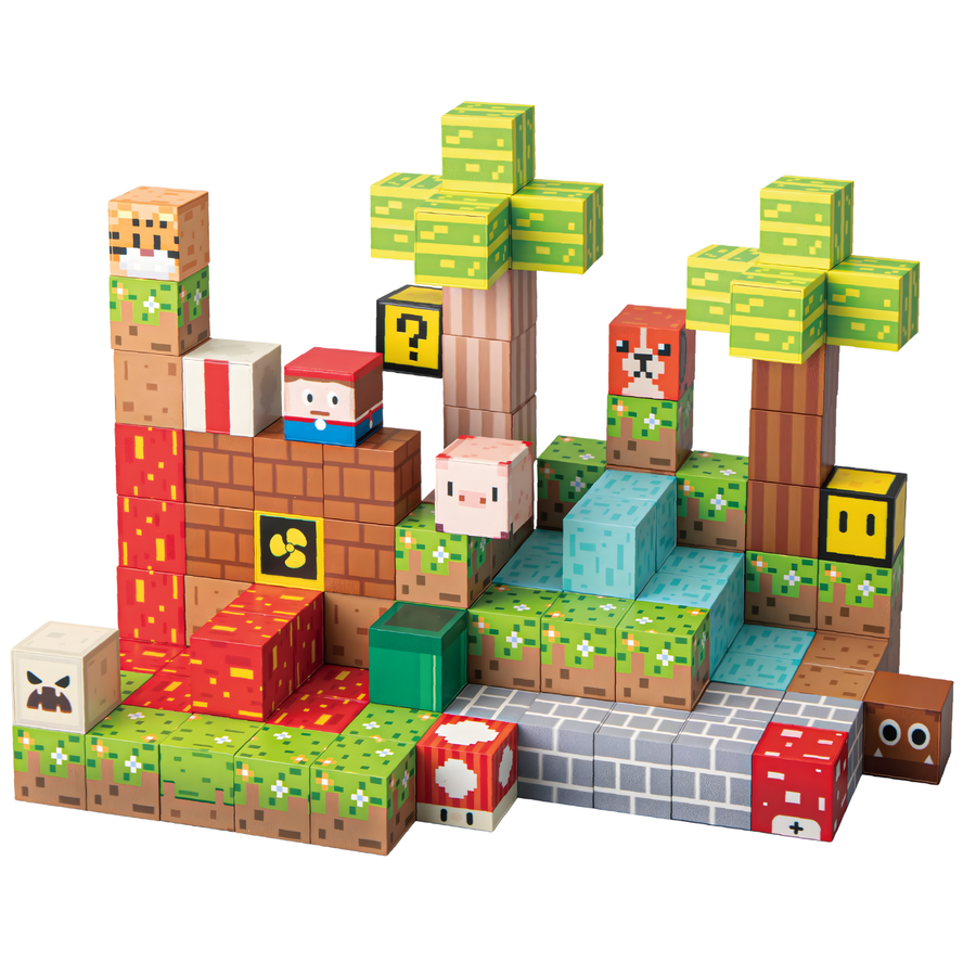 - Kompletny zestaw 147 elementów – idealny do budowania krajobrazów i konstrukcji w stylu pixel-art.