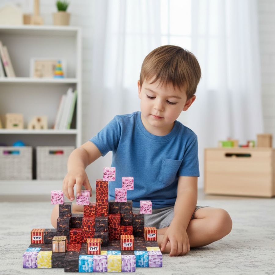 Otwórz drzwi do świata wyobraźni dzięki zestawowi 86 magnetycznych klocków inspirowanych pikselowym stylem znanym z popularnych gier. Każdy klocek ma realistyczne nadruki przedstawiające trawę, kamień, wodę, cegłę czy drewno, dzięki czemu dzieci mogą tworzyć własne miniaturowe światy pełne przygód. Magnetyczne łączenia zapewniają stabilne konstrukcje i sprawiają, że budowanie jest wygodne oraz niezwykle satysfakcjonujące.