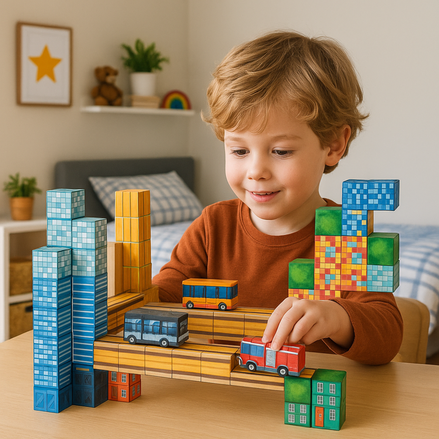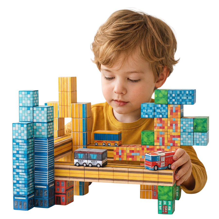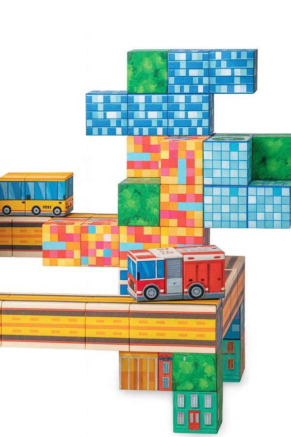 - Klocki 2 × 2 × 2 cm – wygodne dla małych rączek i perfekcyjne do stabilnych konstrukcji.