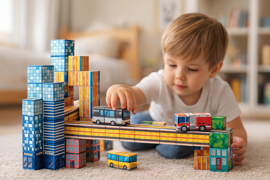 - Rozwijają kreatywność – wspierają myślenie przestrzenne, koordynację i zdolności manualne.