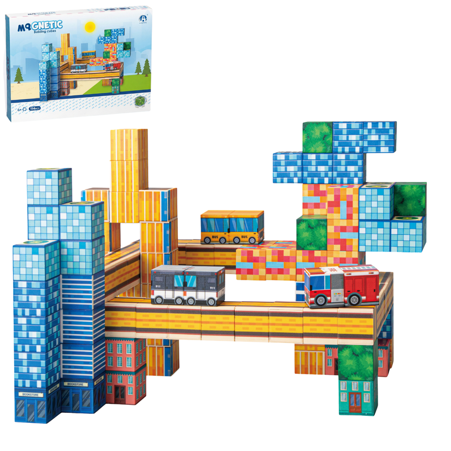 Zestaw zawiera 114 magnetycznych klocków.