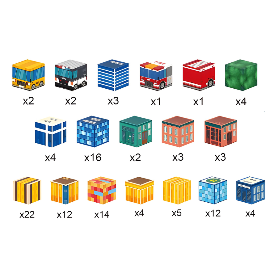 - Kompletny zestaw 114 elementów – idealny do budowania krajobrazów i konstrukcji w stylu pixel-art.