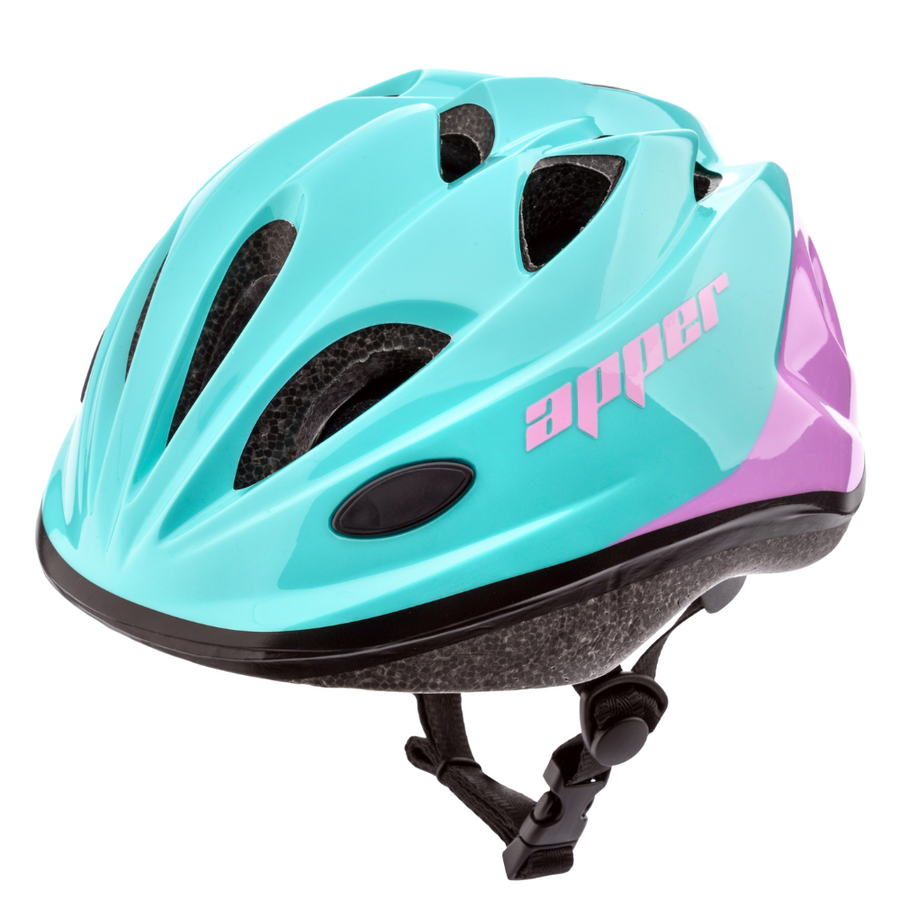 Kask posiada zaokrągloną tylną część, która dodatkowo zabezpiecza potylicę, a pianka EPS skutecznie pochłania siłę uderzeń. Regulacja obwodu i boczne paski umożliwiają idealne dopasowanie do głowy dziecka, natomiast miękkie, zdejmowane wkładki zapewniają wygodę i higienę.