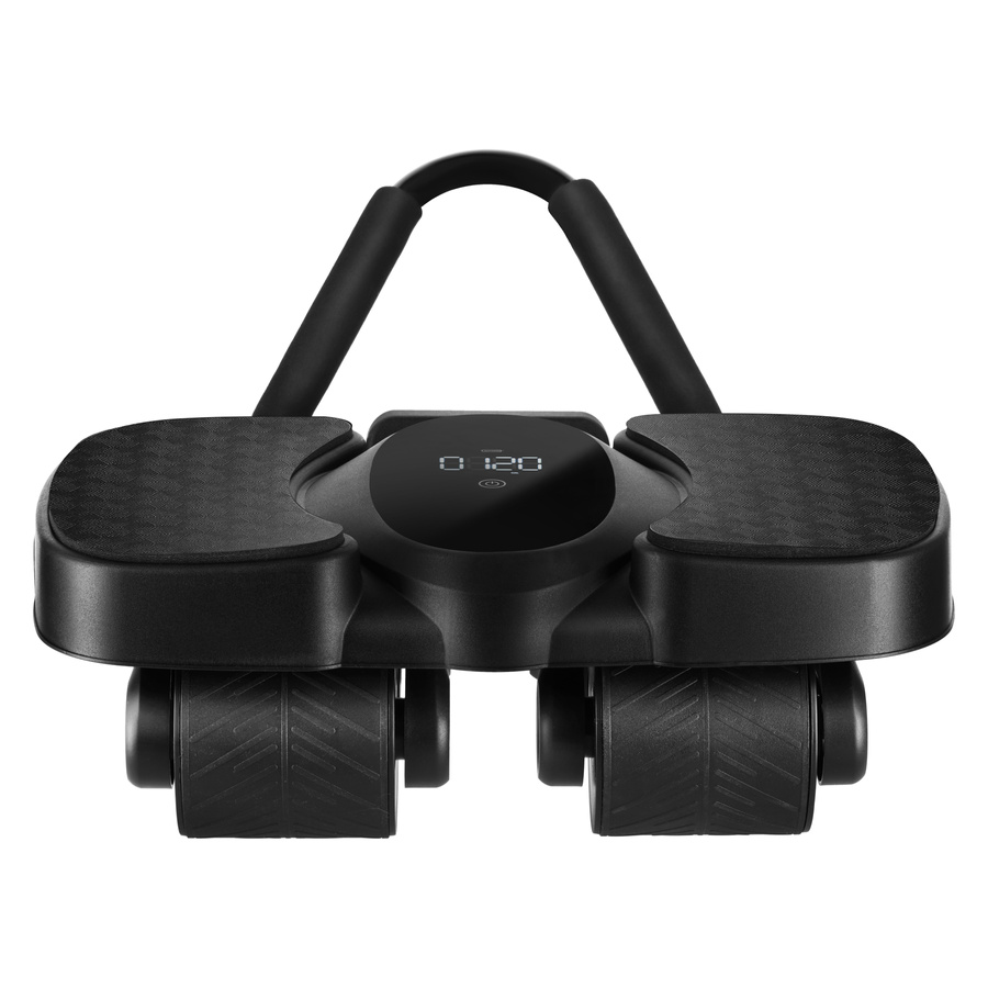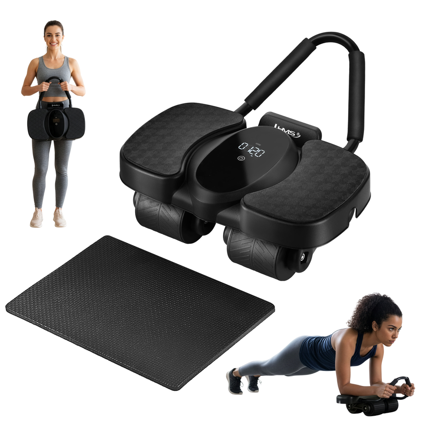KA40 HMS to nowoczesne, czterokołowe ab wheel z mechanizmem automatycznego powrotu, szerokim podparciem łokci i licznikiem LCD. Zapewnia stabilność, wsparcie techniki i komfort nawet dla początkujących. Wyposażone w uchwyt na telefon, ładowanie USB-C oraz miękką matę pod kolana, pozwala przeprowadzić skuteczny i wygodny trening core w domowych warunkach.