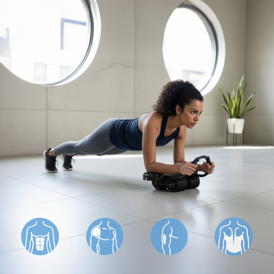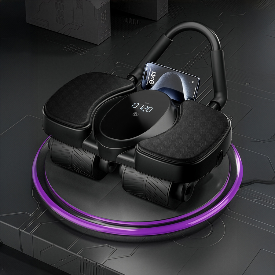 Roller do brzucha z podparciem, licznikiem LCD i uchwytem na telefon