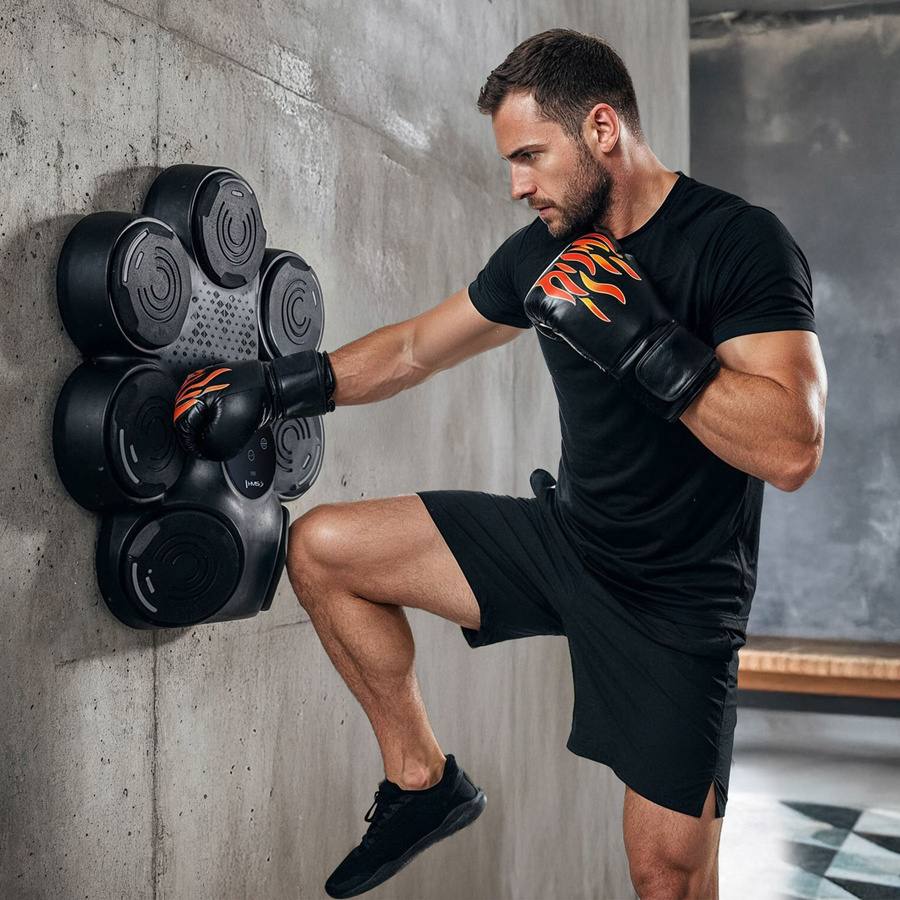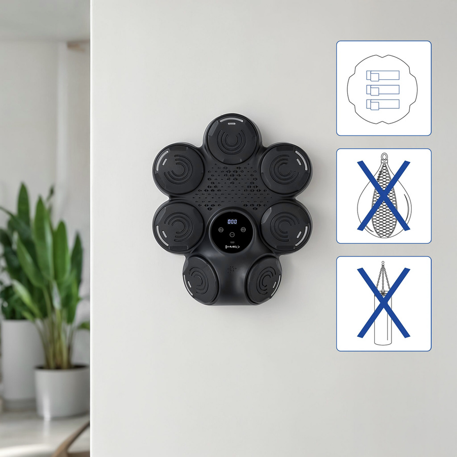 Montaż tarczy odbywa się szybko i wygodnie dzięki mocnemu rzepowi – bez wiercenia i skomplikowanych mocowań. Wbudowany akumulator ładowany przez USB-C zapewnia długie działanie, a dołączone rękawice bokserskie pozwalają rozpocząć trening od razu po rozpakowaniu zestawu. To kompletny system treningowy, który wzmocni kondycję, poprawi refleks i dostarczy mnóstwo sportowej satysfakcji.