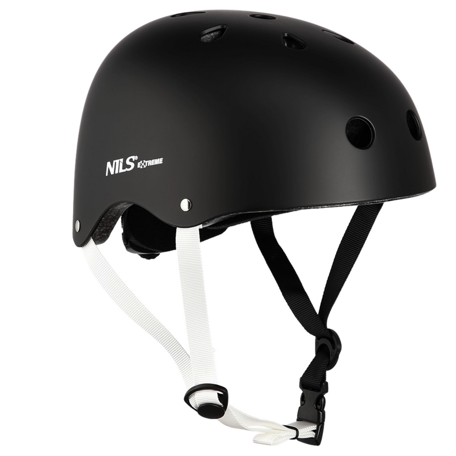 Kask MTW001 NILS EXTREME z ochraniaczami to kompletny zestaw ochronny dla osób, które aktywnie spędzają czas na świeżym powietrzu. Idealnie sprawdzi się podczas jazdy na rolkach, deskorolce, hulajnodze czy rowerze, oferując wysoki poziom bezpieczeństwa i komfortu. Kask wykonano w nowoczesnej technologii Out-mold, która skutecznie rozprasza siłę uderzenia, a wewnętrzna pianka absorbuje pozostałą energię, zapewniając maksymalną ochronę. Regulacja obwodu pokrętłem i wygodny pasek z klamrą gwarantują idealne dopasowanie do głowy. Do zestawu dołączono komplet ochraniaczy, które zabezpieczają nadgarstki, łokcie i kolana, zwiększając bezpieczeństwo podczas każdej aktywności.