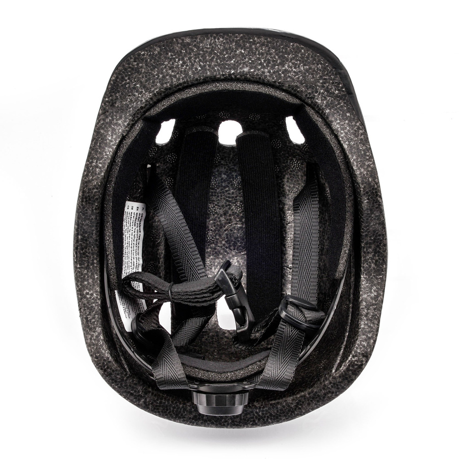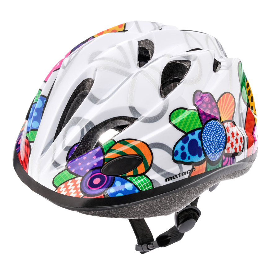 Kask posiada zaokrągloną tylną część, która dodatkowo zabezpiecza potylicę, a pianka EPS skutecznie pochłania siłę uderzeń. Regulacja obwodu i boczne paski umożliwiają idealne dopasowanie do głowy dziecka, natomiast miękkie, zdejmowane wkładki zapewniają wygodę i higienę.