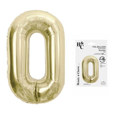 Balon foliowy cyfra 0 – szampański, 85 cm