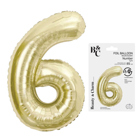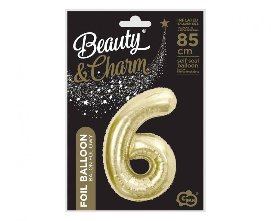Balon foliowy cyfra 6 – szampański, 85 cm