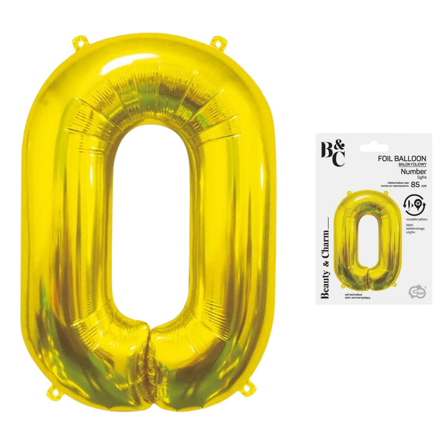Balon foliowy cyfra 0 – złoty, 85 cm