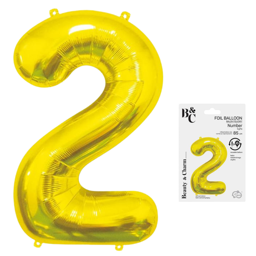 Balon foliowy cyfra 2 – złoty, 85 cm