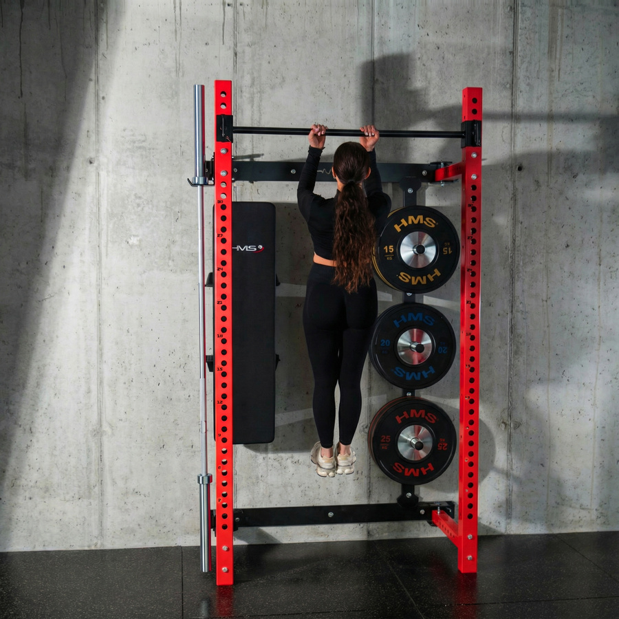 Klatka treningowa KLT34 HMS Fitness została zaprojektowana z myślą o domowych siłowniach, w których kluczowe znaczenie ma oszczędność miejsca i pełna funkcjonalność. Dzięki innowacyjnej konstrukcji rozsuwanej na bok nie wymaga wysokiego sufitu, co pozwala na montaż w mieszkaniach, piwnicach czy garażach. Stabilna stalowa budowa, montaż ścienny oraz składana ławka tworzą bezpieczne i wszechstronne stanowisko do treningu siłowego.