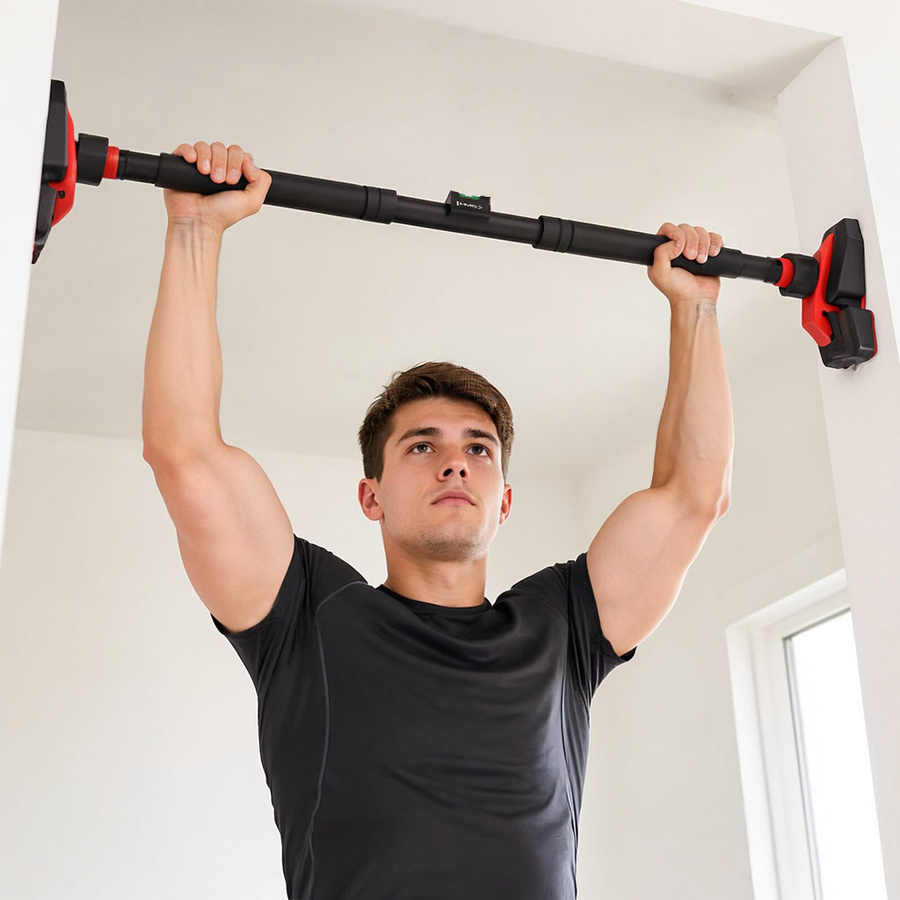 Model DD301 rozsuwa się w zakresie 100–120 cm, dzięki czemu pasuje do większości solidnych framug. Wraz ze wzrostem obciążenia konstrukcja jeszcze mocniej dociska się do ościeżnicy, zwiększając stabilność i bezpieczeństwo użytkownika. To idealne rozwiązanie do domowego treningu siłowego i ogólnorozwojowego.