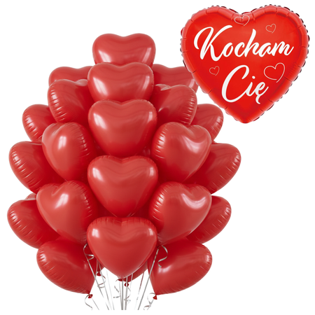Balony Czerwone Serca Na Walentynki 10" 50 szt. + Balon Kocham Cię 18"