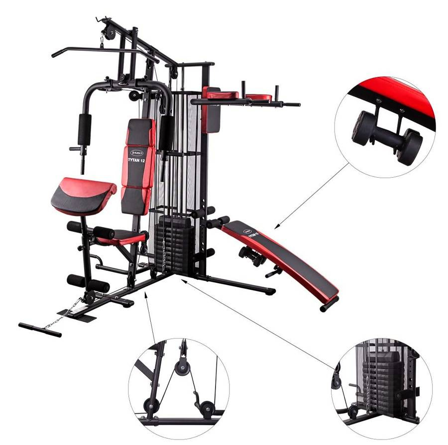 TYTAN 12 HMS pozwala trenować niemal wszystkie grupy mięśniowe: plecy, klatkę piersiową, barki, ramiona, brzuch i nogi – na poziomie porównywalnym z profesjonalną siłownią. Dzięki wielu stacjom treningowym, urządzenie wspiera zróżnicowany, systematyczny rozwój sylwetki.