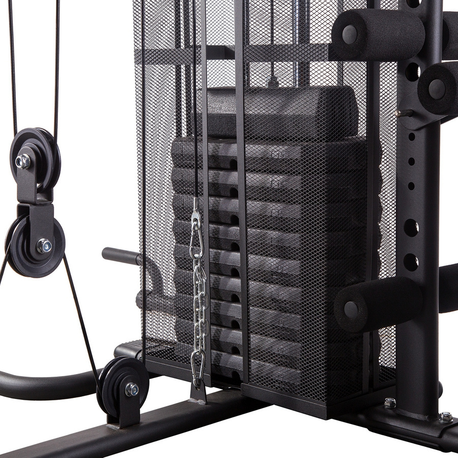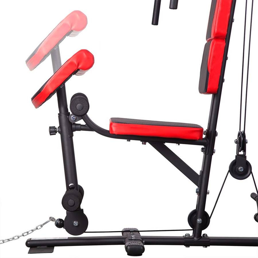 - Funkcje: ławka skośna, modlitewnik, motylek, wyciągi górny i dolny, stacja do nóg, pompki i brzuch