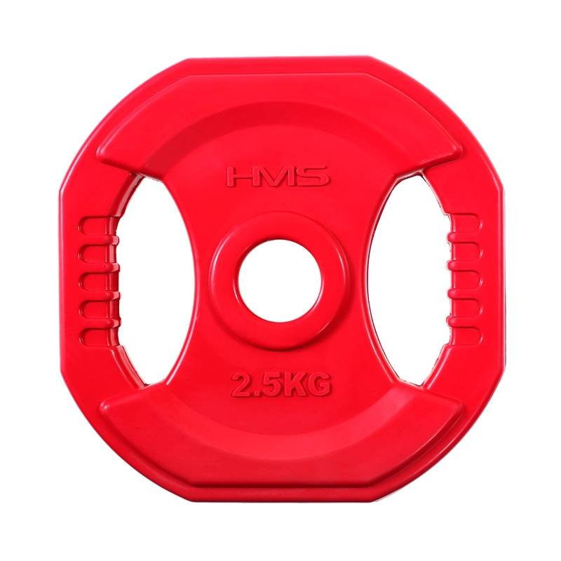 Gryf wykonany został ze stali chromowanej i pokryty przyjemną w dotyku pianką. Zapewnia ona pewny chwyt, zapobiega ślizganiu się rąk oraz chroni przed otarciami i odciskami. Talerze, również stalowe, zostały pokryte kolorową gumą, która amortyzuje uderzenia, chroni podłoże i nadaje całości atrakcyjny wygląd. Dzięki heksagonalnemu kształtowi obciążenia nie toczą się po odłożeniu, co zwiększa bezpieczeństwo i komfort użytkowania.