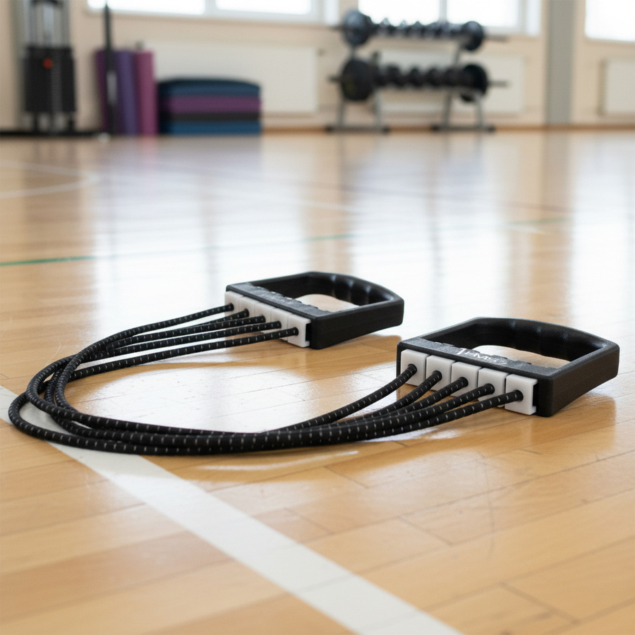 • Elastyczne linki z gumy – odporne na rozciąganie, zapewniają płynny ruch i bezpieczeństwo podczas ćwiczeń.