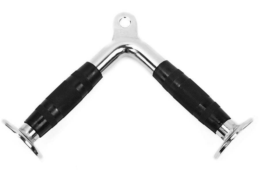 UW06 HMS to trójkątny uchwyt do wyciągu, który umożliwia efektywny trening górnych partii ciała – w szczególności tricepsów, bicepsów oraz mięśni brzucha. Może być stosowany zarówno przy wyciągu górnym, jak i dolnym, co pozwala na szeroką gamę ćwiczeń i wszechstronny rozwój mięśni. Dzięki swojej konstrukcji uchwyt zapewnia alternatywny kąt pracy w stosunku do klasycznych prostych uchwytów, co pozwala na lepsze zaangażowanie wszystkich głów mięśniowych. Ogumowane rękojeści zwiększają komfort i bezpieczeństwo ćwiczeń, eliminując ryzyko wyślizgnięcia się z dłoni nawet podczas intensywnych serii. UW06 HMS to niezawodne narzędzie do rozbudowy ramion i górnych partii ciała, wykonane z wytrzymałej stali.