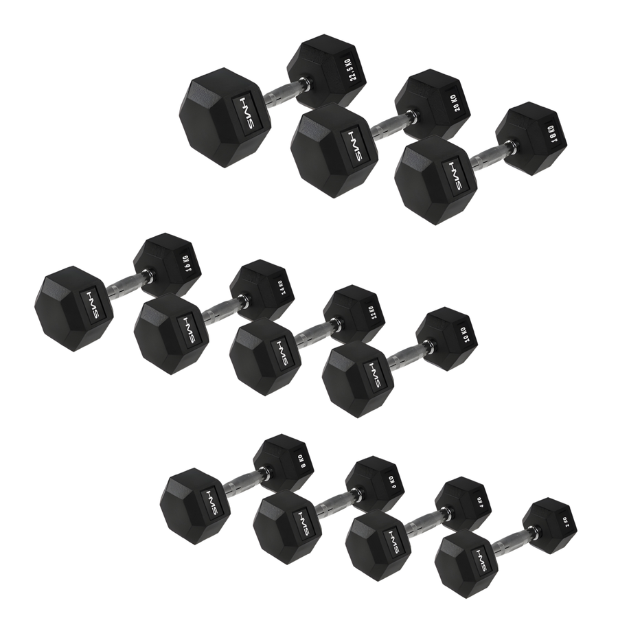 HEX PRO HMS dostępne są w wielu wariantach wagowych, co pozwala idealnie dobrać ciężar do własnych potrzeb treningowych. To uniwersalny sprzęt, który sprawdzi się w treningu siłowym, funkcjonalnym i rehabilitacyjnym.