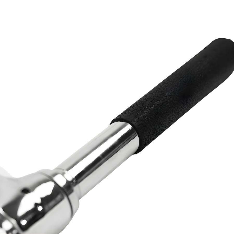 Drążek wykonany został z wysokiej jakości stali, co zapewnia dużą wytrzymałość i możliwość treningu ze znacznym obciążeniem. Ogumowane rękojeści gwarantują pewny, stabilny i komfortowy chwyt, zapobiegając wyślizgnięciu się uchwytu nawet podczas intensywnych serii.
