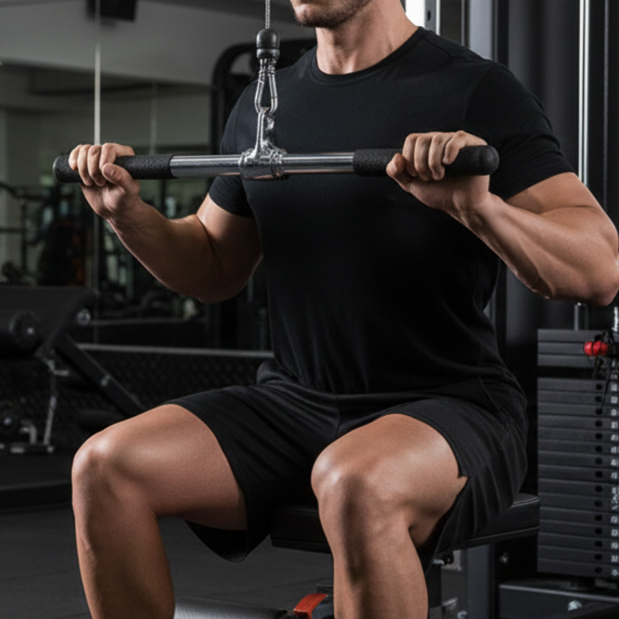 • Krótki drążek do wyciągu górnego i dolnego – uniwersalne zastosowanie w treningu siłowym.