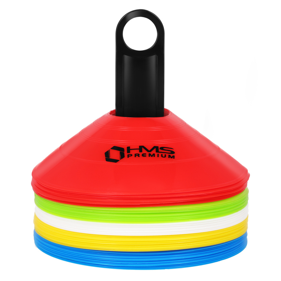 - Zestaw 50 znaczników w różnych kolorach: umożliwia tworzenie czytelnych stref i torów treningowych