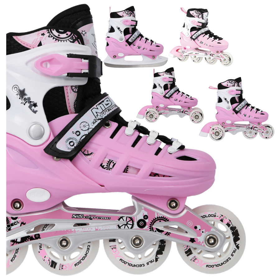 Łyżwy Rolki Regulowane Dziecięce Hokejowe 4w1 Łyżworolki Wrotki Kółka Kauczukowe