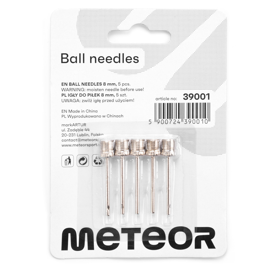 Igły do piłek Meteor 8 mm to praktyczne i solidnie wykonane akcesoria, które sprawdzą się podczas pompowania różnych rodzajów piłek – od futbolowych, przez siatkowe, aż po koszykowe. Wykonane z wytrzymałych materiałów, gwarantują długą żywotność, stabilne pompowanie oraz kompatybilność z większością ręcznych i nożnych pompek dostępnych na rynku. To niezawodny dodatek dla szkół, klubów sportowych i osób aktywnych.