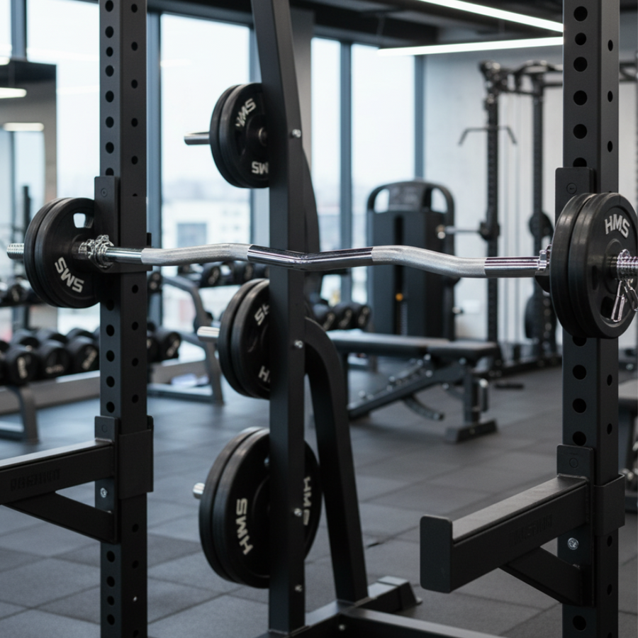 Świetnie sprawdza się w treningu bicepsów, tricepsów i mięśni górnej części ciała, umożliwiając naturalniejszy chwyt niż gryf prosty.