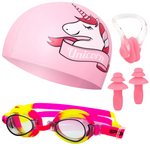 Zestaw Pływacki Do Na Basen Okularki ANTI-FOG + Czepek Unicorn + Zatyczki Do Uszu